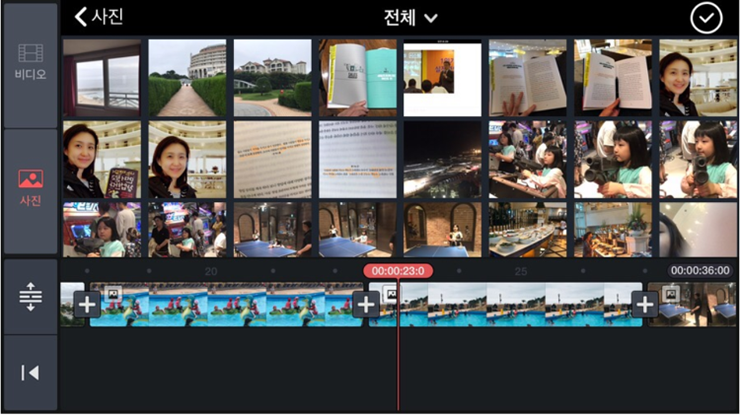 미디어 브라우저를 어가 본인이 촬영한 사진과 영상을 가져오시면 됩니다.