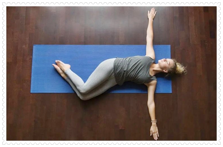 +무릎을 구부리고 발을 평평하게하여 바닥에 누워 팔을 옆으로 유지합니다.