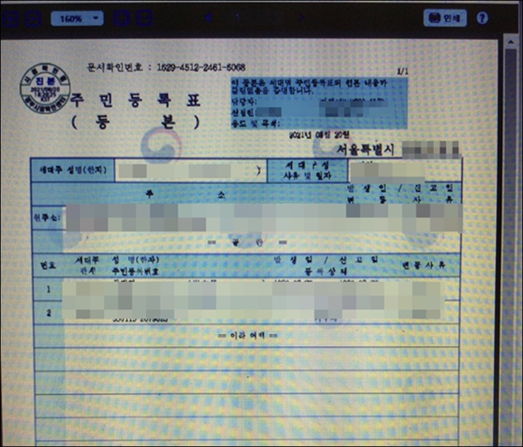 주민등록등본은 개인의 주민등록 이력을 표시하는 주민등록 초본과 달리 개인이 아닌 "세대주"를 기준으로 하는데요. 그러므로 가장 먼저 세대주의 이름이 맨 위에 표기될것 입니다. 그러므로 세대를 확인하기 위해 주민등록등본을 요구하는 것이죠.