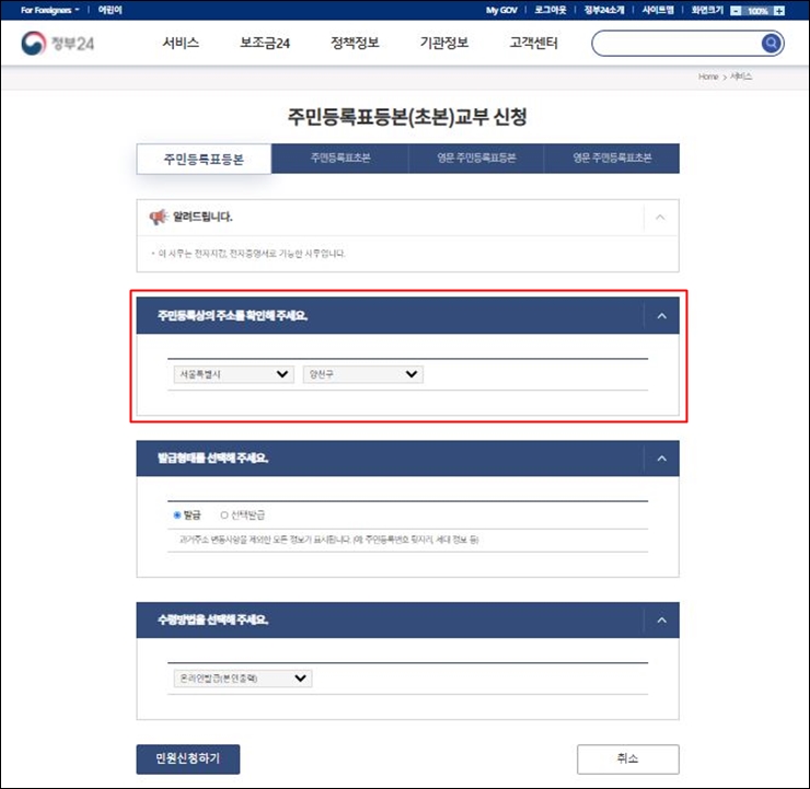 [정부24를 통해 인터넷발급]