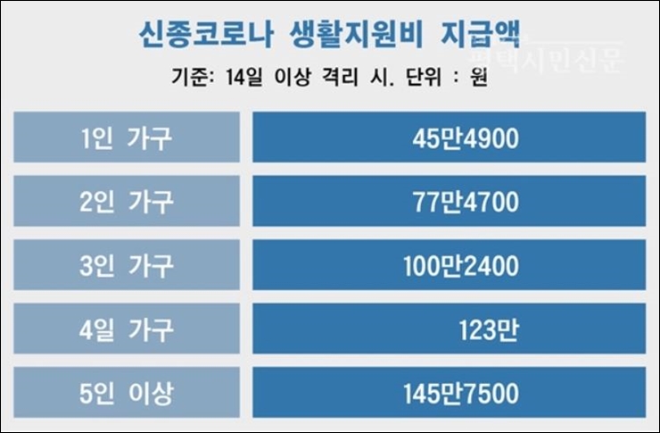 한달을 기준으로 금액을 책정합니다. 14일 미만일 경우 지급액을 14로 나눈 금액은 격리일수를 곱하여 계산합니다.
