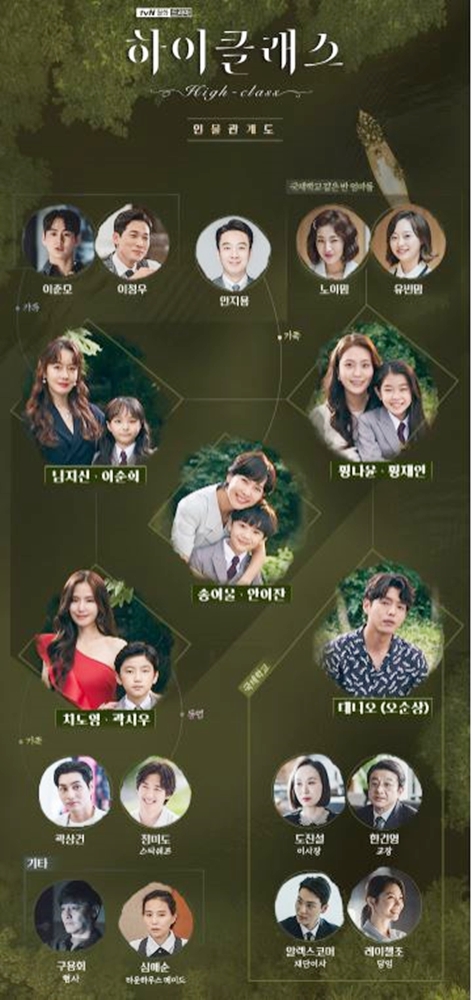 이 드라마의 간략한 줄거리는 낙원과 같은 섬에 위치한 초호화 국제학교를 배경으로, 동급생의 어머니로서 죽은 남편의 여자와 기센 여자들의 치정관계에 대한 미스터리. 솔직히 현실감이 전혀 없는 배경인데 드라마라서 자주 등장하는 레퍼토리 같은 느낌이 듭니다. 예전에 재밌게 봤던 <너는 나의 봄>의 후속으로 방영 됩니다. 그럼 하이클래사 인물관계도를 확인해봅겠습니다.