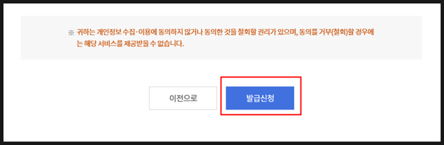 나머지 자격 확인 후 발급 신청을 눌러주면 진짜 끝!
