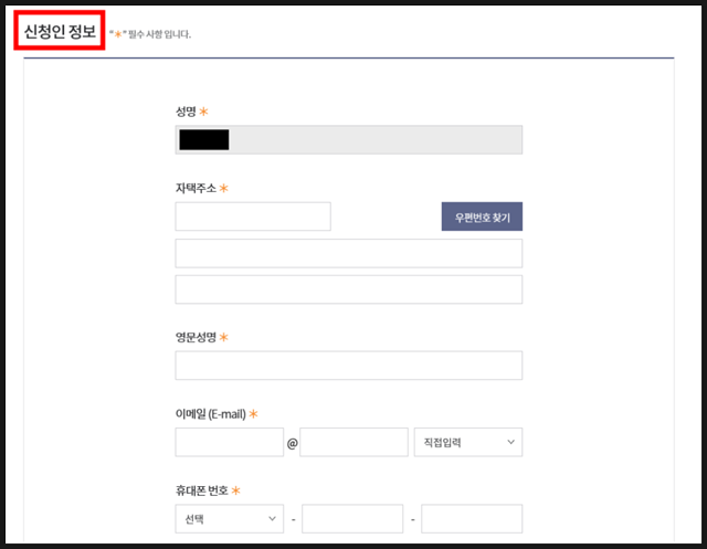 위의 3가지를 다 완료했을 경우 신청서 작성이 가능합니다.