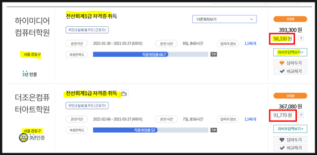 즉, 훈련과정에 따라 자비부담액이 다르니 직접 듣고싶은 내용을 검색 후 확인해보는게 가장 좋습니다.