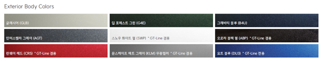 EV6 외장컬러는 총 9종의 외장 컬러이지만 GT라인 전용 컬러 요트블루는 일반 모델에서는 선택 불가합니다. 전체적으로 아이오닉 5 색상은 그레이톤이 많은 반면, EV6은 좀 더 과감한 유채색을 적용해서 도로에서 보는 맛을 내줍니다.