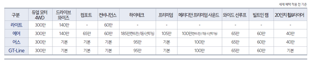 기아 가격표는 참고해야 할 내용을 필터링 없이 그냥 다 던져놓고 알아서 읽어 하는 느낌이 좀 있지만..